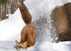 Лисица — прекрасный охотник. Помимо наблюдательности и догадливости, у